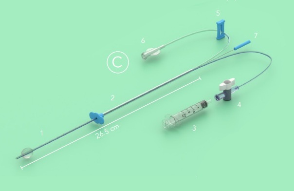 Semi-rigid catheter with an external diameter of 2.0 mm (6 Fr). Equipped with a mandrel to assist with insertion and positioning. Combines flexibility with stability during the procedure. Supplied sterile, single-use, individually packaged.